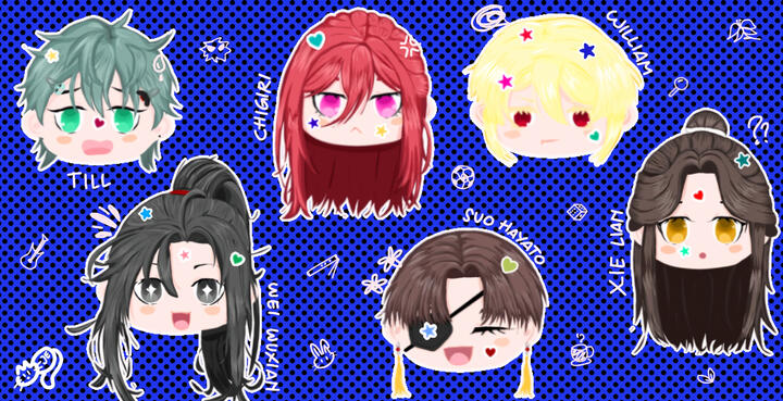 William, Miyamura, Suo Hayato, Usui Takumi, Tomoe, Lu Guang, Till, Vanitas, Hyuna, Haru, Kanata, Iori, Vein, Anne, Winter, Hori, Sua, Mizi, James Bond, Jeanne, Horikita, Kyoko, Lelouch, Yuuichi, Kashima, Seo, Ryuji Ayukawa, Maki Kuwana, Cherry, Chigiri, Wei Wuxian, Xie lian, Zayne, Kujirai Reiko, Hashibira Inosuke, Caleb, Sebastian, kirishima Tooru, Miyano Yoshikazu, Kamado Nezuko, Koito Yuu, Fuji Touya, Rei Suwa, Sakurada Miwako, Fra Gerhard, Mafuyu, Suou, Chris, Wendy, Kaoru Hanase, Apollo, Beelzebub